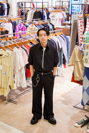 「夏の始まりの開催なので、季節感を考えて、色物と柄を中心に選びました。僕はシンプルな服も好きですが、夏は色の強いもの、柄のあるものをよく着ます。柄物は敬遠している人も多いかと思いますが、着てみると意外に似合うことも多いですよ。モードっぽいもの、ストリートっぽいもの、基本的には全部自分でも欲しいと思ったものばかりです。RAGTAGさんには服好きなお客さんが多いと思うので、楽しんでもらえると嬉しいですね。」