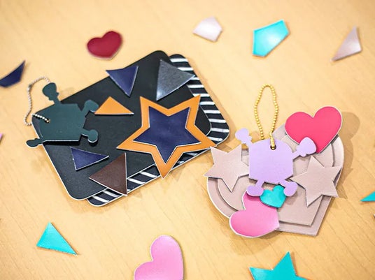 お好きなパーツを自由に組み合わせたり、切ったり、貼ったりして、自分だけのオリジナルキーホルダーを作ります。