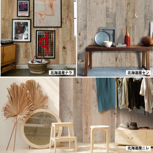 プロジェクトの対象商品は、北海道を代表するナラ、ニレ、センの3樹種を使用したフローリングとパネリング6アイテムです。