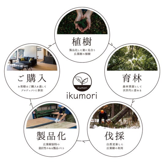 「森からいただいた広葉樹を、いただいた量だけ森にお返しする」ikumoriプロジェクト。植樹貢献の証や、企業のCSR活動の取組み証明など、さまざまなシーンでご活用いただけます!