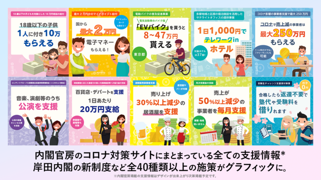 イラストとわかりやすい言葉で、給付金などの行政サービス情報を必要な困っている人にお届けします。