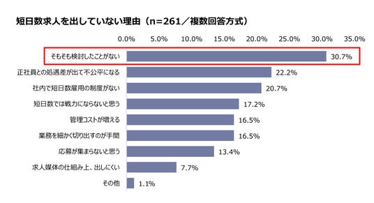 3.短日数求人を出さない理由1位「そもそも検討したことがない」(30.7%) "できない"のではなく、"考えたことがない"が最大の障壁
