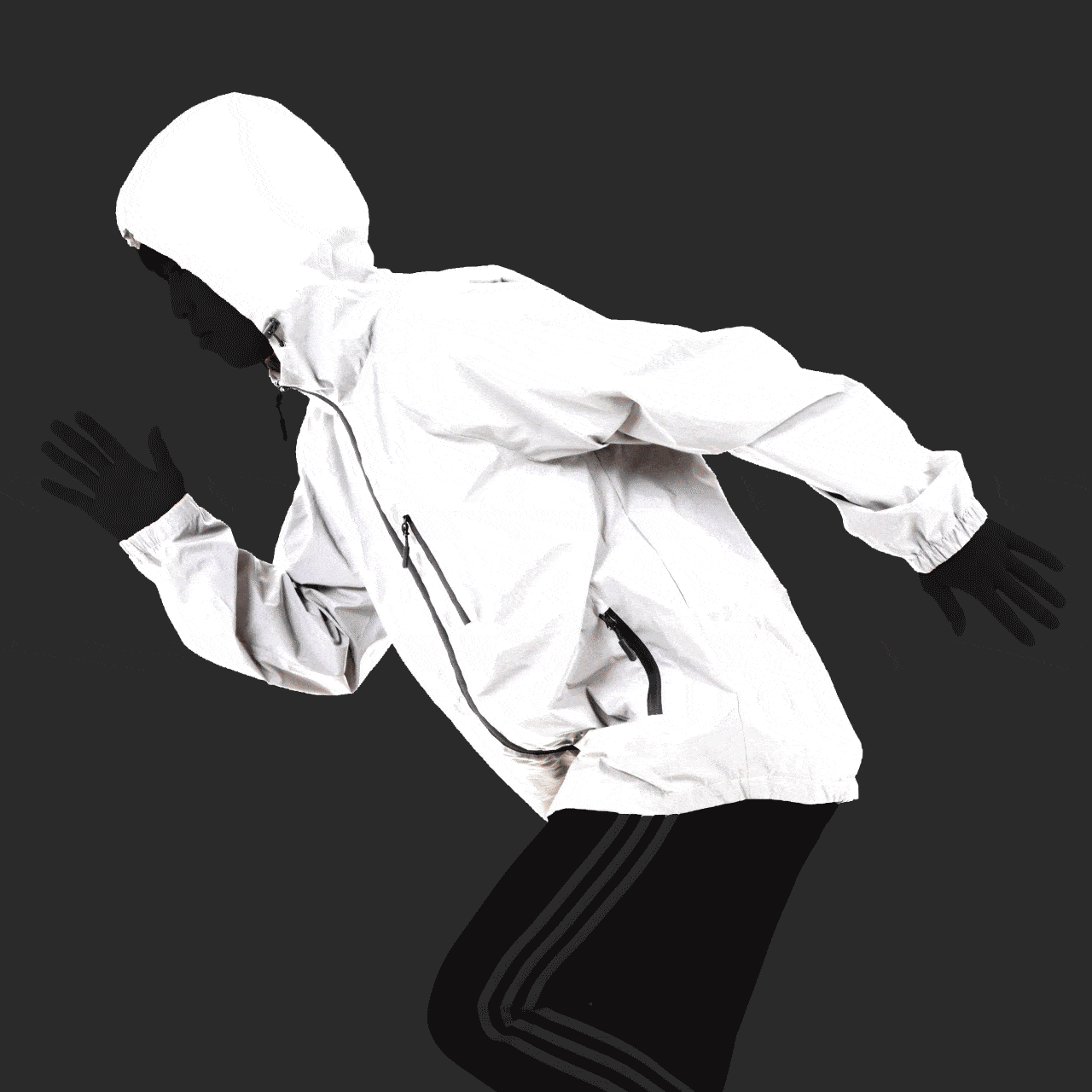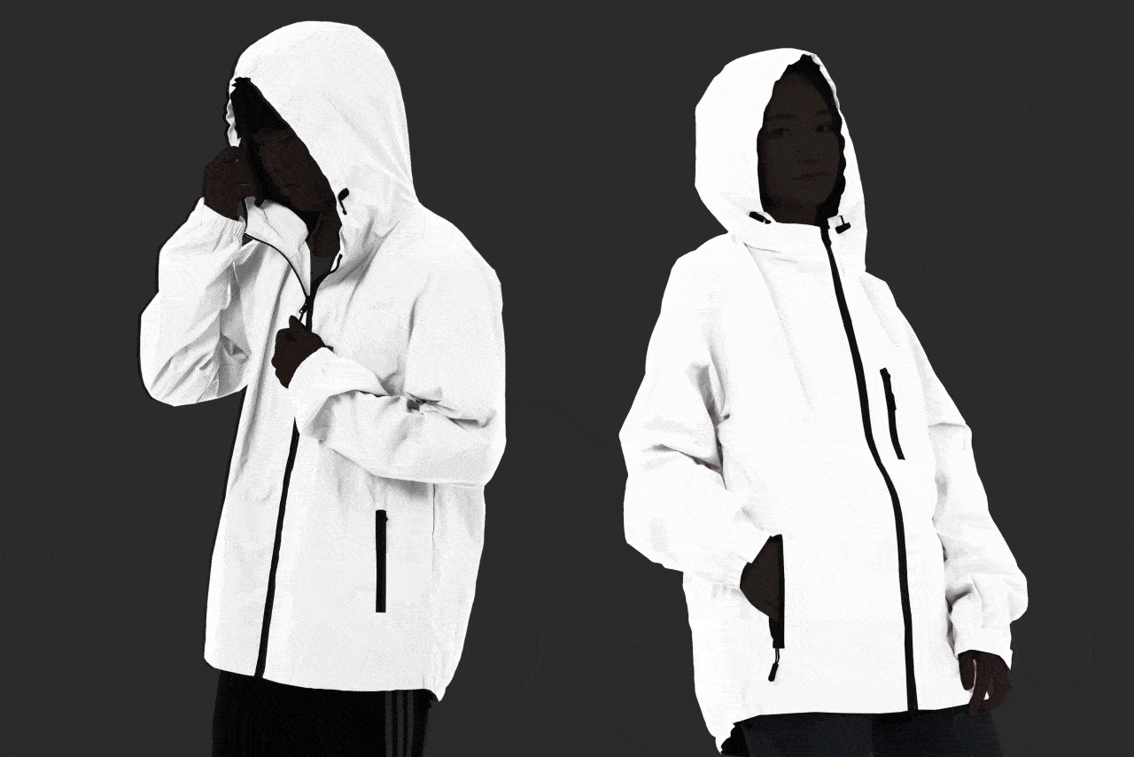 真っ白に光り、着用者の存在を知らせてくれる「魔法のジャケット」