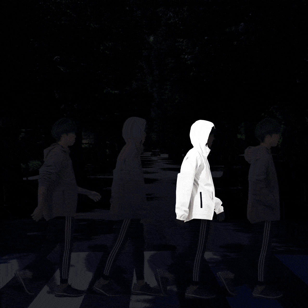 視認性の悪い、暗い道で「ヒヤリ」とした経験を基に、再帰性反射を活用したピカジャケを企画しました。
