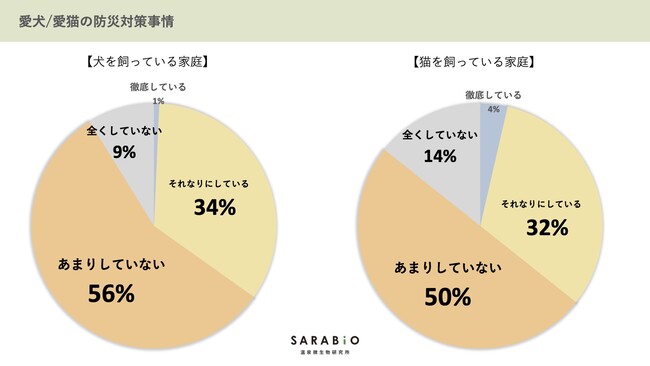 「温泉プロバイオティクス※」により自然界の行きた微生物の力を人と動物の健康と暮らしに活かす製品の研究開発を行う株式会社SARABiO温泉微生物研究所(本社:大分県別府市、代表取締役社長:濱田拓也、以下当社)は、9月1日の防災の日に向けて、犬・猫(以下、「ペット」)飼育者の300名を対象に、【ペットのための防災対策に関する意識調査】を実施しました。