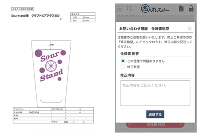 2020年から名入れ用品シミュレーター「名入れスルー」というサービスを飲食店備品通販サイト「飲食店用品.jp」に導入しておりました。シミュレーターを利用した見積依頼が簡単でイメージしやすいと評判を得て、利用者数が拡大。2022年は当社全体で年間5,000件以上のお見積りに対応いたしました。