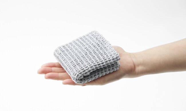 編み目に約2×4mmの隙間を設け、糸同士の間隔も広く設計した台フキン。