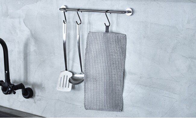セット使いもしやすいよう、カラーと長辺の長さ(約340mm)を「h tag フキン(*)」に揃えたことで、収納時もきれいに収まります。