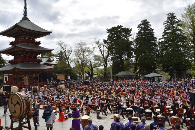 4月15・16日の成田太鼓祭に合わせて一般公開開始。4月15日夜には表参道をキャンドルで照らす「千灯路」も実施