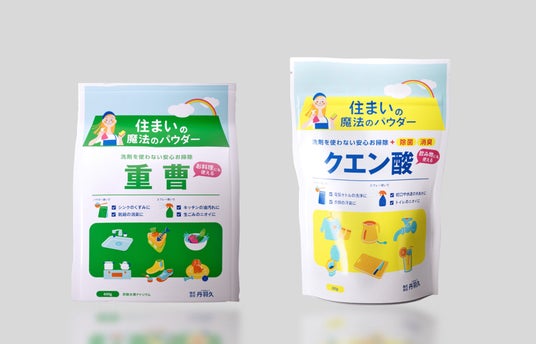 このような市場動向を受け、丹羽久は消費者のニーズにさらに応えるために「住まいの魔法パウダー・スプレー」ナチュラルクリーナーシリーズのパッケージリニューアルを決定いたしました。今回のリニューアルでは、特に「重曹」「クエン酸」商品に関して、丹羽久最大の強みとしている食品品質であることを強く訴求するデザインを採用いたしました。また、若年層の方にも製品の使用感や効果が伝わりやすいよう、イラストを使用しています。