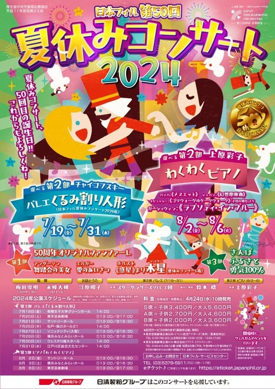 公益財団法人日本フィルハーモニー交響楽団(東京都杉並区、理事長:平井俊邦)は、2024年7月19日~8月6日に1都3県で第50回日本フィル夏休みコンサート2024を開催します。