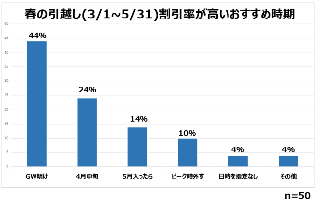 4月中旬またはGW後半がおすすめ (ワクワク引越しサービス / 東京都)