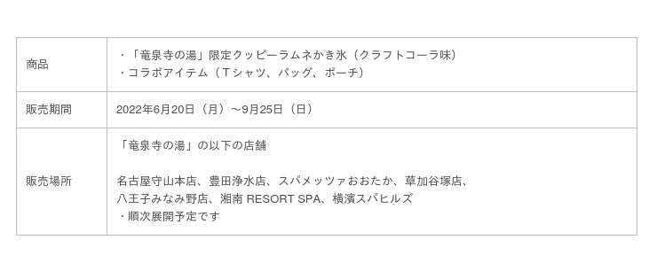 仲介したのは、スーパー銭湯の“元祖”として知られる「竜泉寺の湯」を展開するオークランド観光開発 株式会社(春日井市)と、ウサギとリスのキャラクターでおなじみの「クッピーラムネ」を製造するカクダイ製菓 株式会社(名古屋市)で、「竜泉寺の湯」と「クッピーラムネ」はともに“名古屋発祥”です。