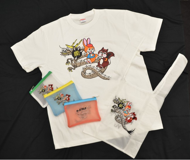 <コラボアイテム(Tシャツ、刺繍バッグ、刺繍ポーチ)>