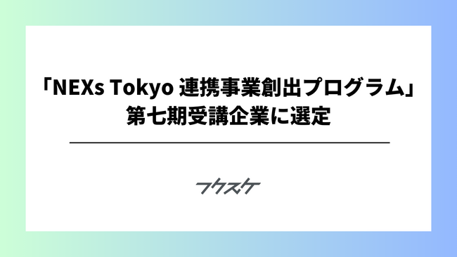 副業リスク管理プラットフォーム「フクスケ」を提供する株式会社フクスケ(本社:東京都千代田区、代表取締役:小林 大介、以下「フクスケ」)は、業種・業界・地域の壁を越えたイノベーションの創出を目的に東京都が主催する「NEXs Tokyo 連携事業創出プログラム 第7期」受講企業に選定されました。