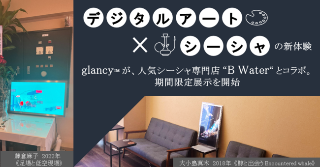 この度、超人気店KIMETの3号店であるシーシャカフェ「B Water」にて、シーシャと、「glancy」の新進気鋭の現代アートのコラボレーションによる新たな空間演出を実現いたしました。