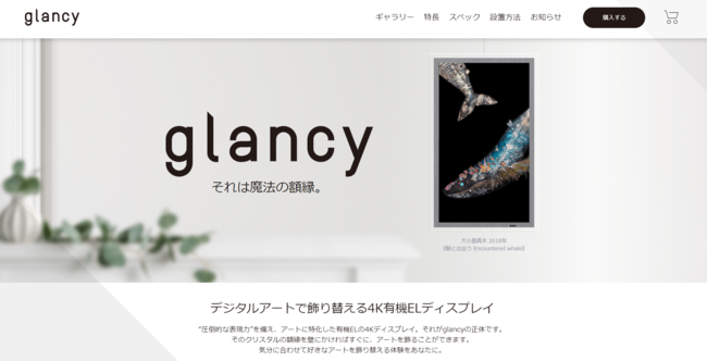 「glancy™」は、お部屋にいながら有機ELディスプレイでアートや風景を自由に飾り替え、デジタルならではの新しい作品鑑賞の体験をお届けする次世代インテリアです。