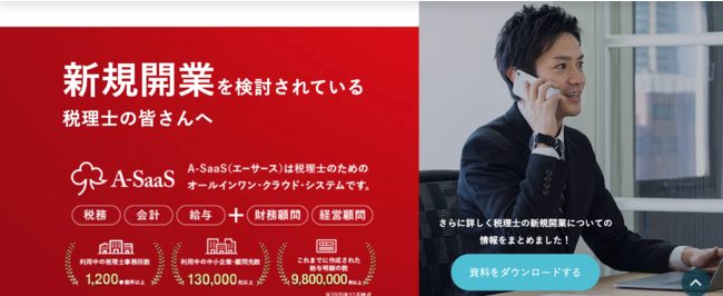 「A-SaaS(エーサース)」は、税務・会計・給与業務の効率化と、財務顧問や経営顧問といった付加価値サービスの提供を同時に実現するフルスタック・クラウドシステムです。1,200を超える税理士・会計事務所と、13万を超える中小事業者(中小企業、個人事業主等)にご利用いただいております。