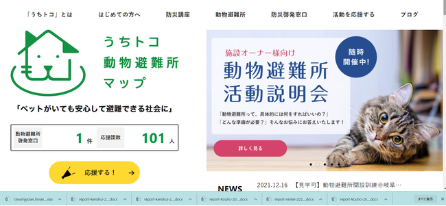 『うちトコ動物避難所マップ』は動物避難所の位置や情報を一覧にしたサイトで、当協会が運営しています。現在、動物避難所の登録を募集している段階です。2022年3月末までに100件の登録を目指しています。