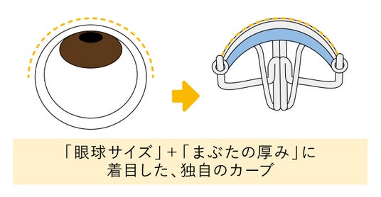 ・千差万別な「まぶたのカーブ」ではなく、「眼球サイズ」+「まぶたの厚み」に着目した、独自のカーブを採用。ひとえ・奥ぶたえのまぶたにぴったりフィットします。