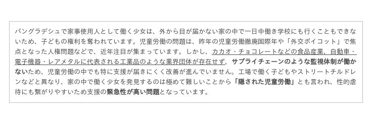 <児童労働について:https://www.youtube.com/watch?v=DNEdY_UprtU&t=8s>
