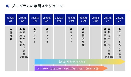 - 修了生メンター制度の拡充(縦の学び合いの深化)昨年度好評だったOB・OGによるメンター体制をさらに強化。実践経験を持つ修了生の伴走により、現役受講生が現場で直面する壁を乗り越えるための「生きた知恵」の継承を加速させます。