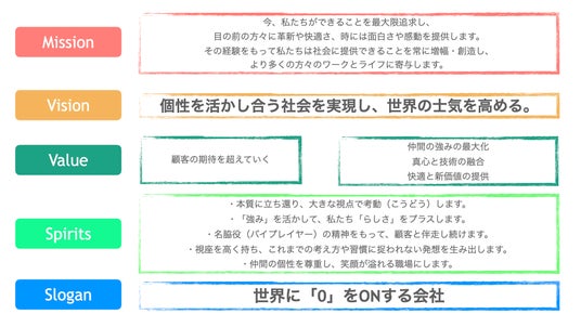 また、人事制度においては、会社の理念に対して、社員自身ができる貢献や実現したいキャリアと向き合い、それを会社にプレゼンすることで、会社から投資=給与を引き出す「自己申告型の給与制度=オーナーシップ制度」を導入しております。