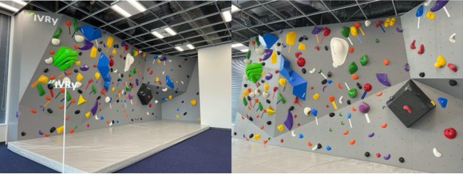 この度のオフィス移転では、「なにかひとつ、普通の会社はやらないユニークなスポットを作りたい」と考え、ボルダリングスペースを設けました。