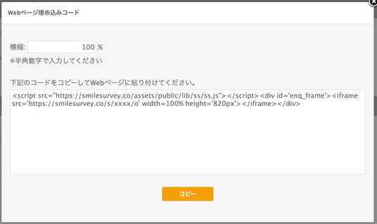 「埋め込みコード自動作成機能」ではコピペするだけでコーポレートサイトなどに作成したフォームを埋め込み表示できます。