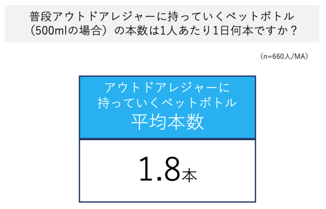 ・普段アウトドアレジャーに持っていくペットボトルの本数は1日あたり平均1.8本。