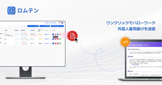 外国人雇用のDX化を推進するタブソリューション株式会社(本社:東京都新宿区、代表取締役 エルデネトグトフ トゥブシンバト)は、外国人従業員雇用管理サービス「ロムテン」において、外国人雇用状況届出システムへのオンライン届出提出機能を新たに搭載し、正式にリリースしたことをお知らせいたします。
