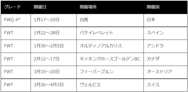 ■Freeride World Tour 2022 開催スケジュール