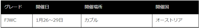 昨シーズンのジュニアの国内シリーズでスノーボード、スキーのカテゴリで1位となった竹内悠貴選手、玉井天満選手、川合雄大選手の3名は、10~18歳以下を対象とするジュニアシリーズの最終戦へ初出場いたします。グローバルなFJTポイントランキングに登録されている選手2200名中上位65名のみが出場できるジュニアの最終戦には、過去に勝野天欄選手が2度出場していますが、同年に3名の日本人がワイルドカードで選出されるのは初の快挙となります。