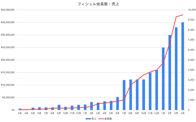 サービス開始から約2年で定期フィシュル会員数9,500人、売上3,500万円を突破しました。