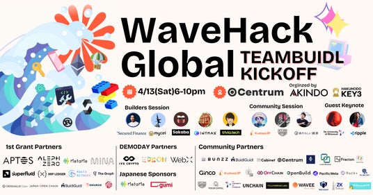 日本最大級のweb3ハッカソンプラットフォームAKINDOを運営するtrevary株式会社(代表取締役:金城辰一郎)は、株式会社博報堂キースリー(CEO:重松俊範)とともに開催する、web3キラーアプリ創出のための大規模な開発金支援プログラム「WaveHack Global」の最初の助成金パートナーを発表しました。またその公開に合わせてチームビルドを目的としたキックオフイベントを4/13(土)に渋谷Centrumにて開催いたします。