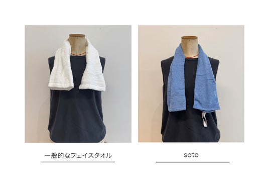 『soto』は、こうした課題を解決し、気軽に持ち歩けるタオルを目指して開発されました。