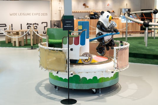 ルーツとなるキッズライドワイドレジャーがアミューズメント事業を始めるきっかけになった「キクチハンドメイズ工業株式会社」制作のパンダの乗り物。万博出展のため、九州各地を探し回り、奇跡的に出会うことができました。