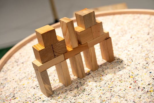里山木材を活用した「あづみの積木」MIRAPPAに設置している積木は、長野県安曇野市が行っている里山の魅力を伝え、考えるプロジェクトから生まれたもの。松枯れ材を利活用して制作された積木を、高く積んだり、並べたり。遊び方は自由自在です。