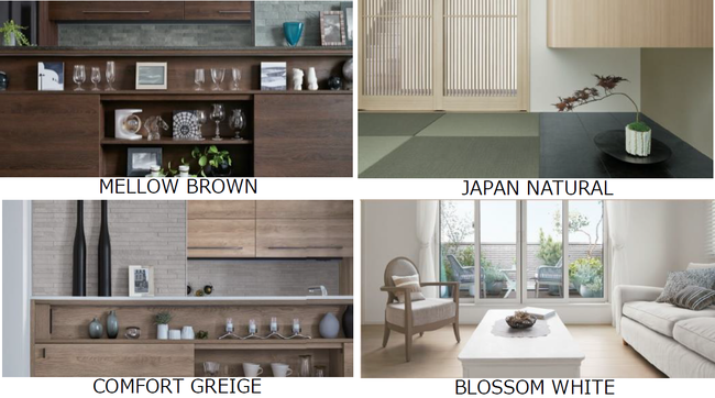 「MELLOW BROWN」「JAPAN NATURAL」「COMFORT GREIGE」「BLOSSOM WHITE」の4つのコンセプトスタイルやパラペットルーフ、ルーバーなどのエクステリアは「グラン・セゾン」のデザインを受け継ぎつつ、外壁の全面タイルに、シンボリックな印象を与える大判の「グレイスタイル」を新たに設定。「グラン・スマート」らしさを演出しました。