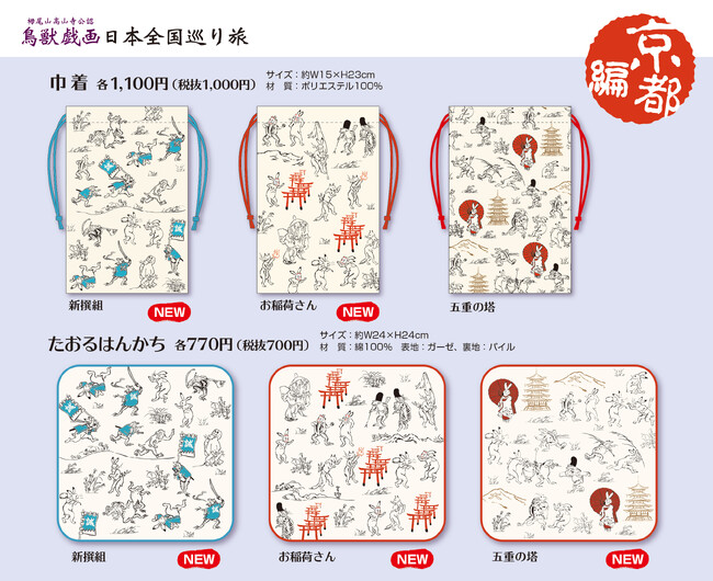 オリジナルグッズの商品企画・製造・販売を行う株式会社 立誠社(本社:大阪市淀川区・代表取締役社長:藤本勝己)が、京都地区限定で『鳥獣戯画 日本全国巡り旅』の京都編の新商品を発売する。