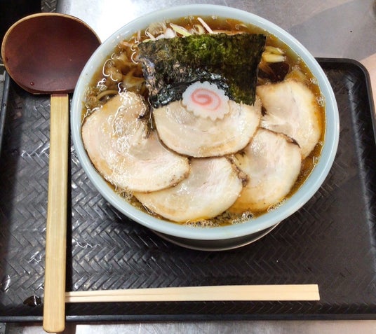 中華そばにチャーシューを5枚乗せた満足のいく一品。