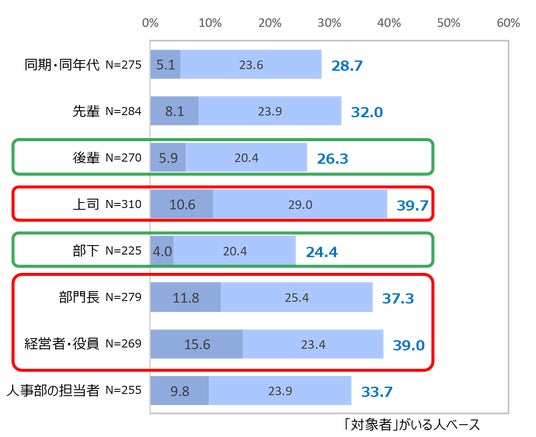 ・上司に対しては「前提や考え方が違う」「高圧的」という理由がトップで、先輩に関しては「価値観が合わない」「高圧的」という理由がトップであった。