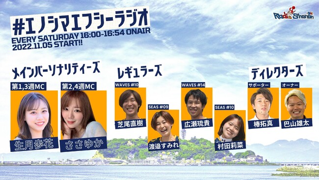 『オリンピックの開催を契機に、アーバンスポーツやマリンスポーツが盛り上がりを見せ、若い活気で溢れる湘南藤沢地域。1970年代のリバイバルと言われるネオシティポップのトレンドの最中において、冬季期間の観光市場の伸び代や、カルチャープレイヤーの高齢化、女性の就業率などに課題を持っていると言われております。江の島FCとしての新しい挑戦となるこの『#エノシマエフシーラジオ』では、音楽、芸術、スポーツのユースカルチャーの発信地である湘南藤沢地域から、様々な視点が集まるハブとなるべく特別なゲストをお呼びして、地域の方々はもちろん、若年層をターゲットにした1時間を展開。湘南藤沢発のコンテンツがSNSを介して拡散され、クリエイティブな新しい世代のコミュニティを創出していくことを目指します。神奈川で活躍するハイパーファンカルチャークリエイターのささゆかさんとtvkのお天気キャスターを務めていたスポーツキャスターの原石生月歩花さんとともに、カルチャーの発信地藤沢から、『藤沢市初のプロサッカークラブ』となる江の島FCとして、新しい世代を代表する番組を制作していけるように尽力してまいります。エノシマエフシーラジオを、どうぞよろしくお願いいたします。』