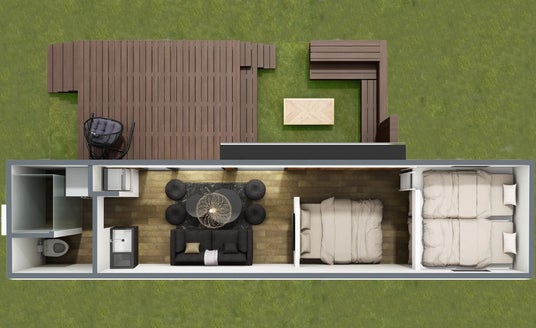 家族やグループで過ごすのにおススメです。海外ブランド家具が揃ったシックな色味のインテリアは、少し大人な夜を頼んでいただける優雅な時間を誘います。大型のソファーでは日中の疲れをゆっくりと癒やし、外のデッキでは美しい星空を眺めて極上の時をお過ごし頂けます。トイレ/シャワー/キッチンが付いているので、室内での時間も充実しています。