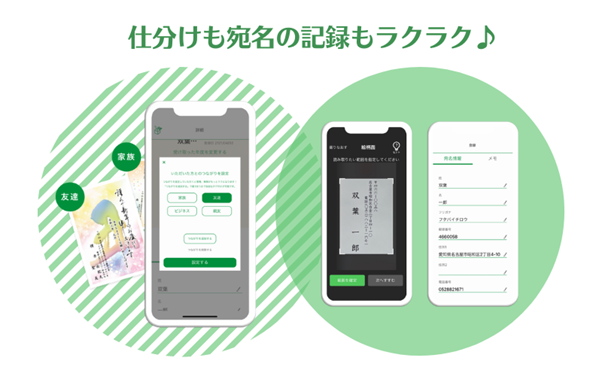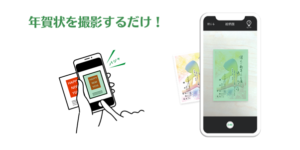 年賀状を撮影するだけで、仕分けから宛名の管理までアプリ上で行うことができます。
