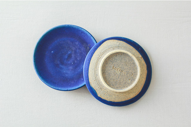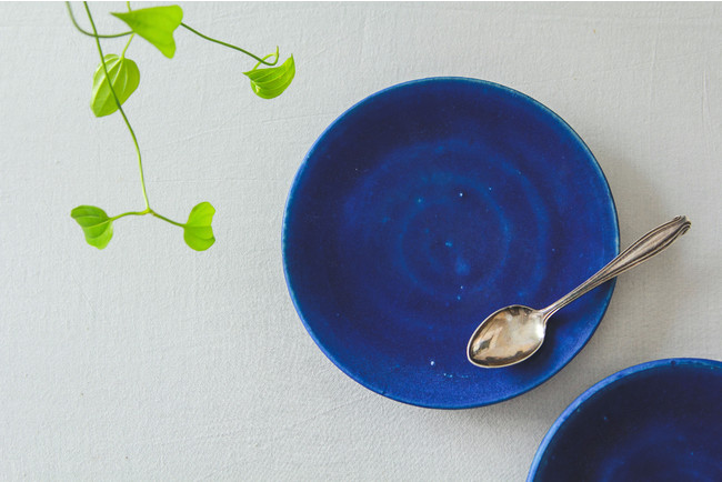 toroaはスイーツを通してほっと一息つけるくつろぎの時間をお届けしたいという想いを込めてスイーツ開発をしているので、ほっと一息の時間にあったらいいな、と思う色として深くて綺麗な青色を選びました。秋冬でも寒々しさを感じない、心地のいい深さのある色味にしています。春の穏やかな光や夏の強い光が当たるときれいに反射して華やかさを増します。季節の変化や1日の時間の移り変わりとともに変わるお皿の表情の変化もお楽しみいただけたらと思います。