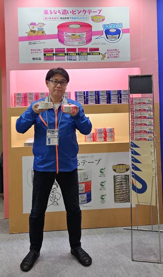 このテープの製品名である「土、帰るテープ」は、松浦産業の本社がある香川県出身の作家、菊池寛先生の代表作「父帰る」から発案いたしました。そのため、パッケージも小説家風のイラストを採用しています。初披露となった昨年の農業WEEKで、自然環境に配慮した生分解テープの需要の高さを実感し、改めて、自社開発に踏み切ってよかったと思いました。