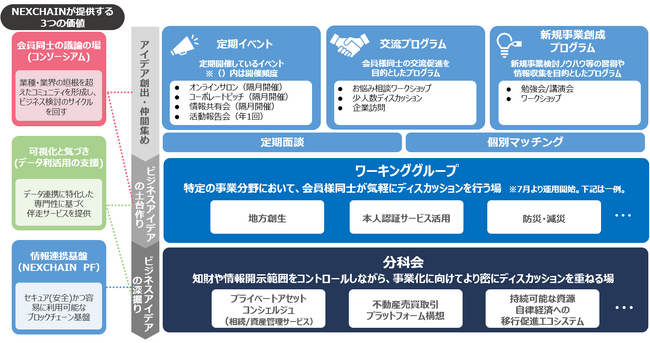 今後も NEXCHAIN は「コンソーシアム」としての共創の場と、「NEXCHAIN プラットフォームサービス」の提供価値向上に努め、あらゆる企業が、安全性の高い環境で情報を連携できる基盤を整備することで、お客さまおよび企業の双方に有益なエコシステムを実現し、オープンイノベーションの加速に貢献してまいります。