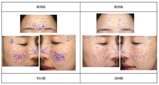 *メイクアップ効果による毛穴数減少(肌測定済み)