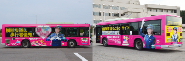 ラッピングされたバスは9 月17 日から翌年3 月15 日まで、⻘森、八戸、弘前の各市において市民の目を楽しませるとともに、交通安全意識の向上を目指して三市の路線を走行します。